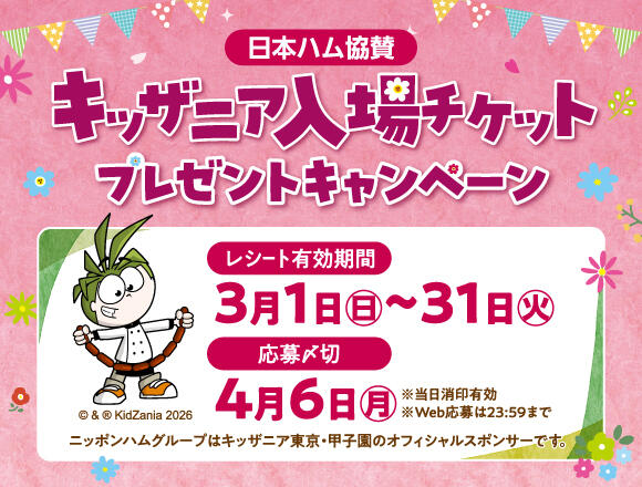 対象商品合計税込1,000円以上のレシートで応募!キッザニア入場チケットが抽選で50組100名様当たる!
