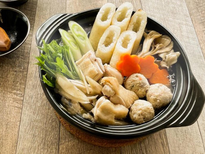 - 3最後に水菜を入れて、軽く煮ます。 ※おすすめの〆は淡麗貝だしラーメンです。